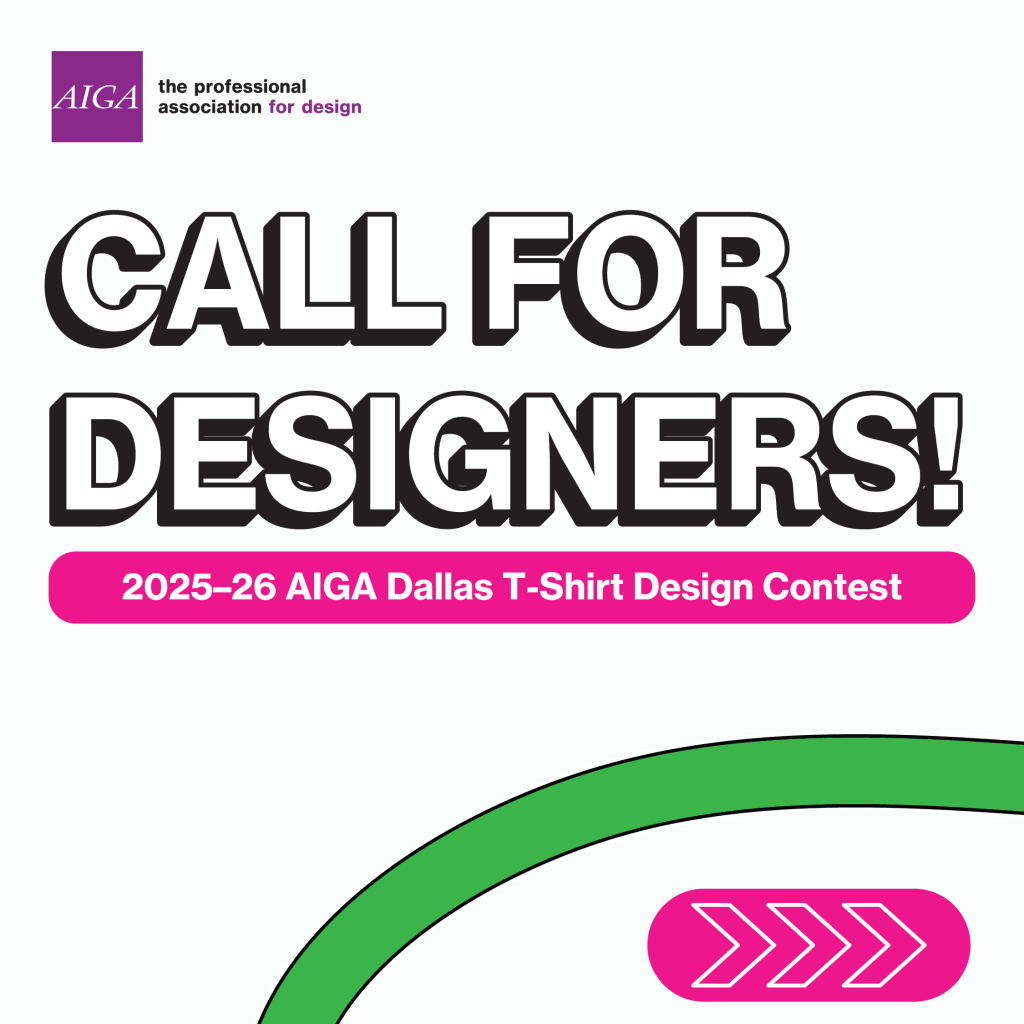 We’re creating a new AIGA Dallas t-shirt—and we want your design. The theme is open; the only requirement is to include the AIGA Dallas logo or the words “AIGA Dallas.”