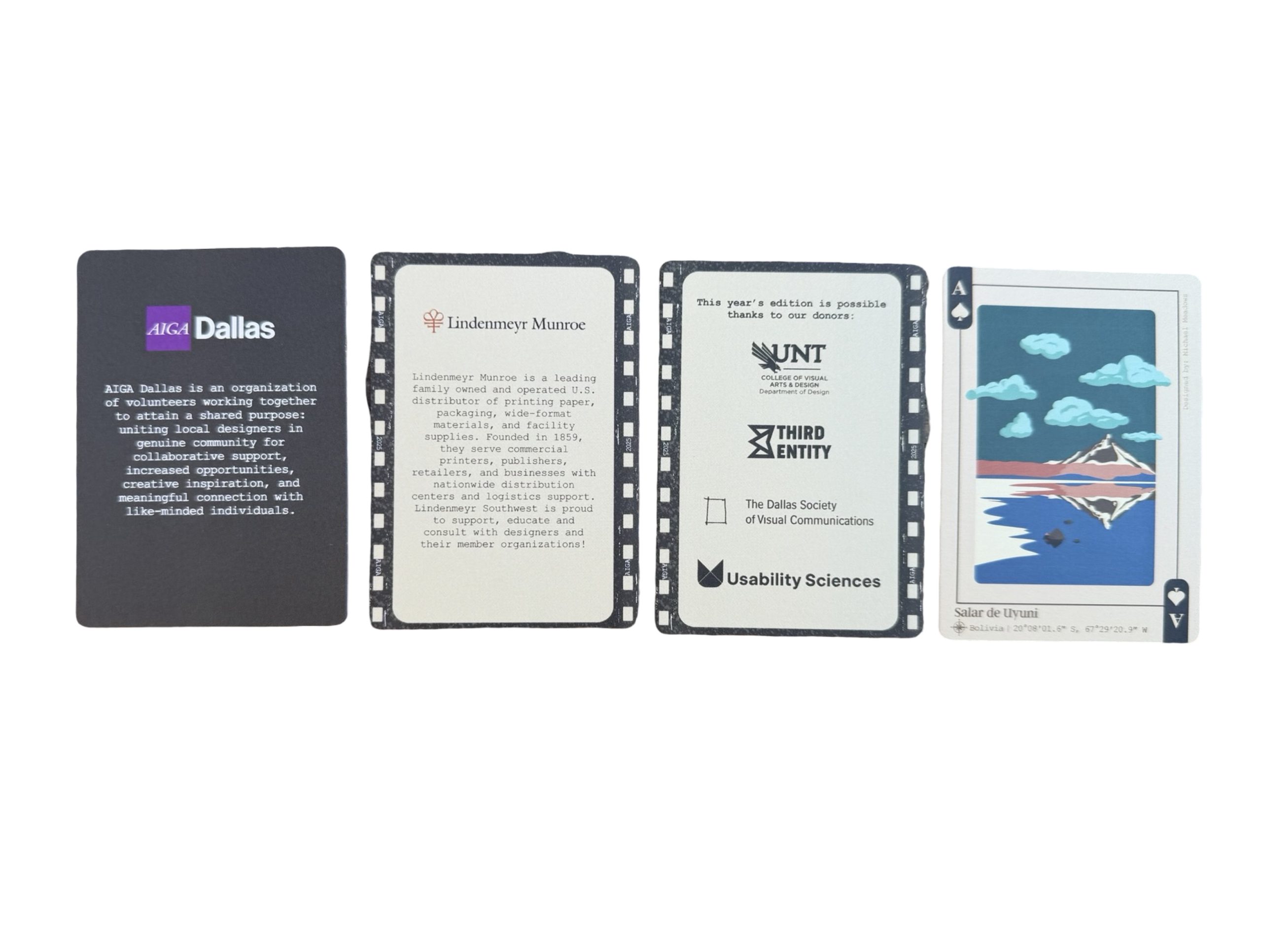 This isn’t your average deck of cards — it’s a breathtaking expedition through art and imagination. The Deck 2025: Natural Wonders of the World brings together 54 AIGA Dallas designers, each reinterpreting one of Earth’s awe-inspiring marvels — from vast canyons and icy peaks to hidden forests and celestial skies. The result? A bold, beautifully illustrated celebration of creativity and the planet that inspires it.